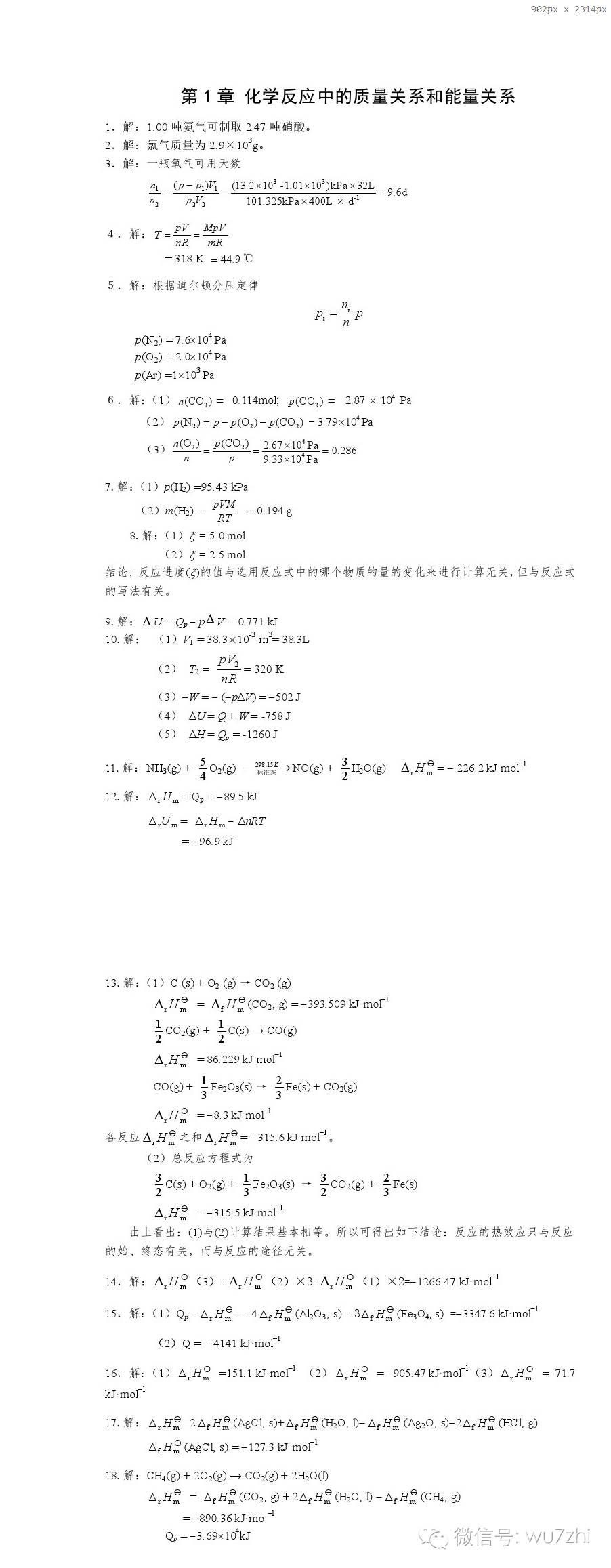 第1章:化学反应中的质量关系和能量关系